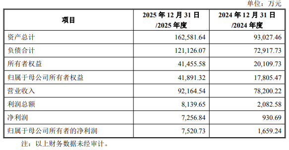 2024年度、2025年度,标的公司停业收入别离为78,200。22万元、92,164。54万元,净利润别离为930。69万元、7,256。84万元,归属于母公司所有者的净利润别离为1,659。24万元、7,520。73万元。