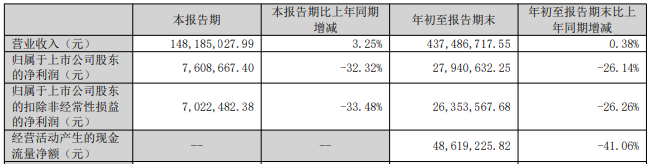 2025年前三季度,锐新科技停业收入为4。37亿元,同比增加0。38%;归属于上市公司股东的净利润0。28亿元,同比下降26。14%;归属于上市公司股东的扣除非经常性损益的净利润0。26亿元,同比下降26。26%;运营勾当发生的现金流量净额0。49亿元,同比下降41。06%。